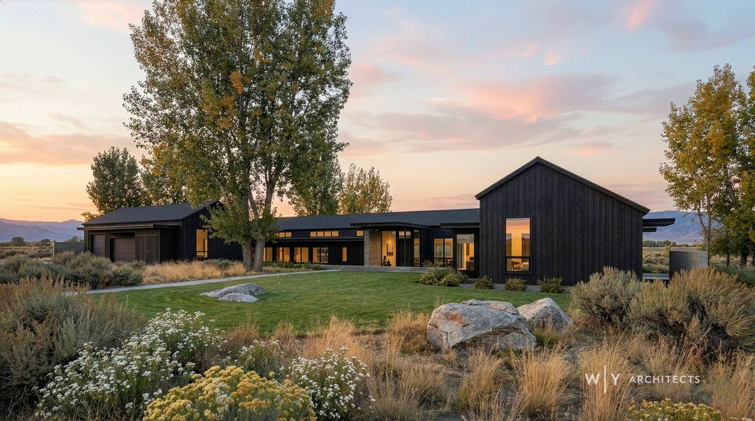 Set along the Carson River at the edge of the beautiful Sierras, this 4,500 sq. ft. residence, accompanied by a detached pool house, combines modern, Scandinavian, and farmhouse influences. Situated on a working cattle ranch, it presents a captivating architectural composition that exudes charm and elegance.