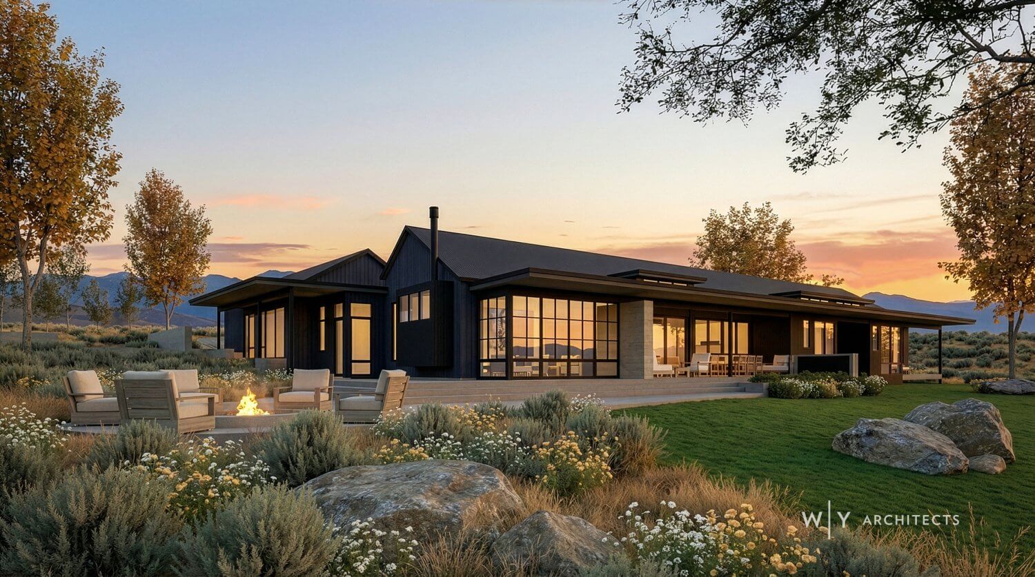 Set along the Carson River at the edge of the beautiful Sierras, this 4,500 sq. ft. residence, accompanied by a detached pool house, combines modern, Scandinavian, and farmhouse influences. Situated on a working cattle ranch, it presents a captivating architectural composition that exudes charm and elegance.